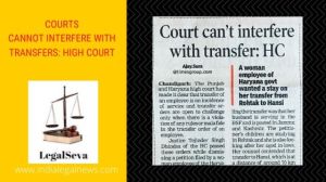 • She is aggrieved by her transfer from Rohtak to Hansi and filed a stay petition in the High Court.