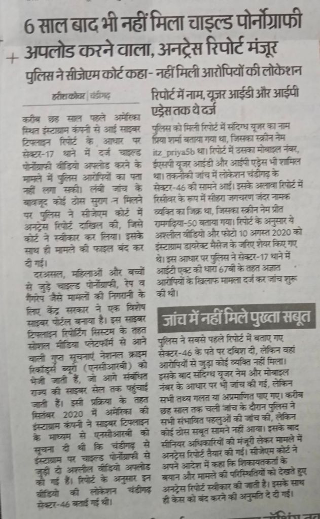 Based on this, an FIR was registered under Section 67B of the IT Act at Sector-17 Police Station.