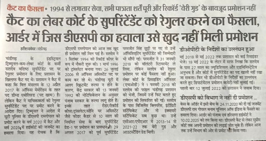 • Legal Standing: The Chandigarh Administration informed the Central Administrative Tribunal (CAT) that he did not meet all conditions for promotion and that SP posts are reserved for IPS officers.