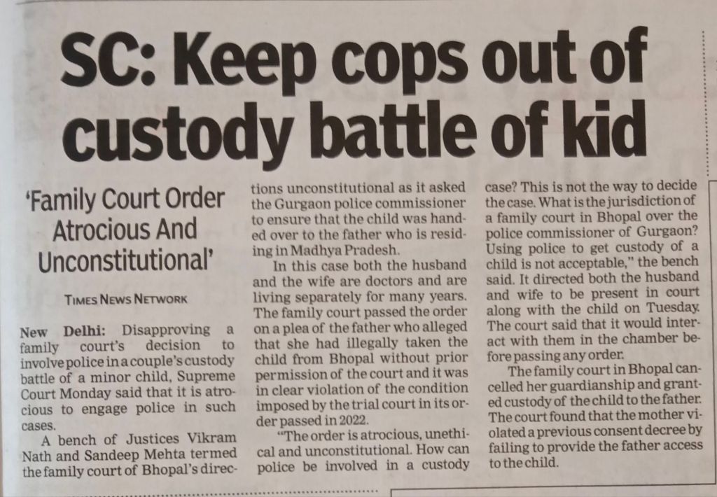 The Supreme Court has strongly criticized the involvement of police in child custody disputes, calling such actions “atrocious and unconstitutional.”