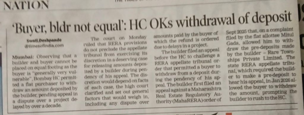 The Bombay High Court’s decision is a major boost for homebuyers, reaffirming that legal processes should not become a barrier to relief. By allowing withdrawal of deposited amounts, the Court ensured that buyers receive timely financial relief even during ongoing litigation.