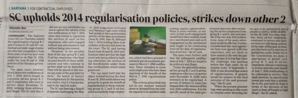 In a significant ruling, the Supreme Court of India upheld certain 2014 regularisation policies of the Haryana Government while striking down others as arbitrary and illegal.