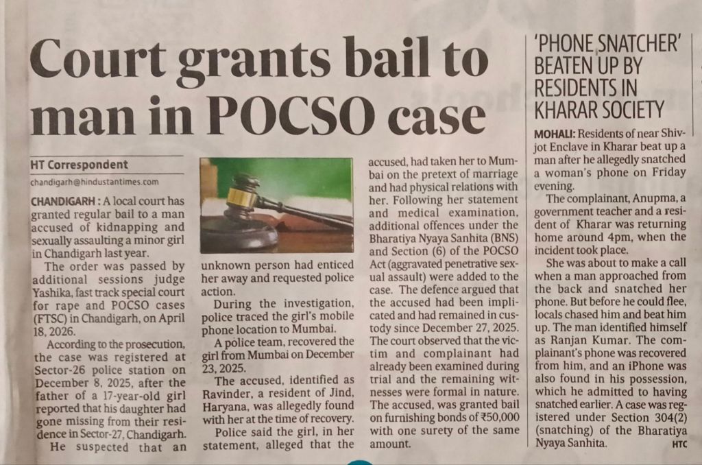 In a recent development from Chandigarh, a local court granted regular bail to an accused in a case involving allegations under the Protection of Children from Sexual Offences (POCSO) Act. The order highlights how courts balance the seriousness of allegations with procedural fairness and stage of trial.